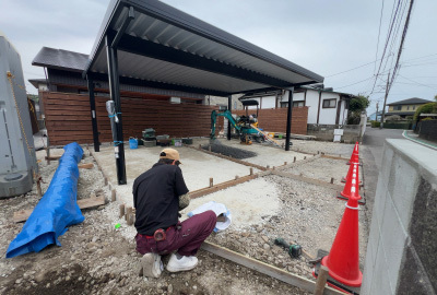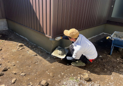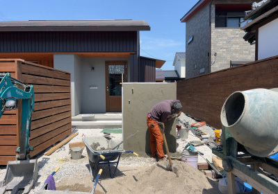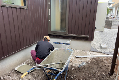基礎の巾木塗りも行い、ついに外構工事も始まります!