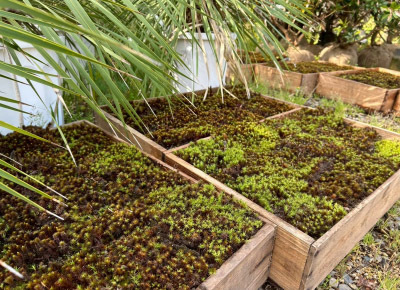 山の中から新たなすみかへ運ばれてきた木々、植栽スペースに仮置きします。