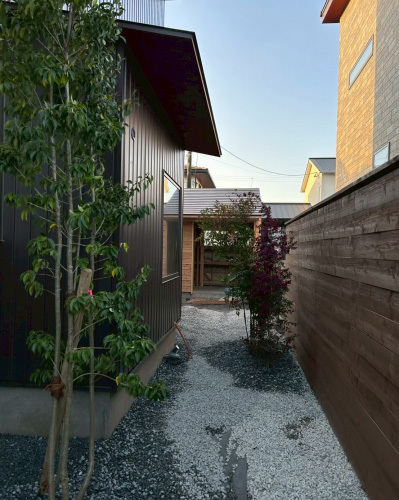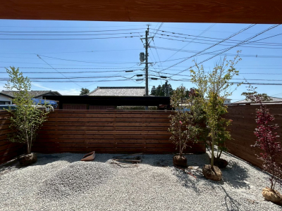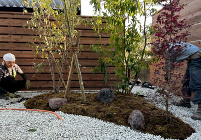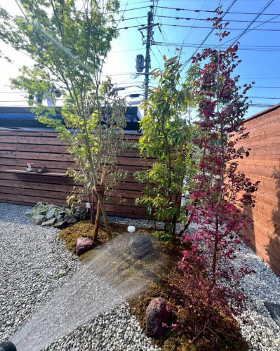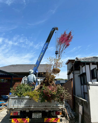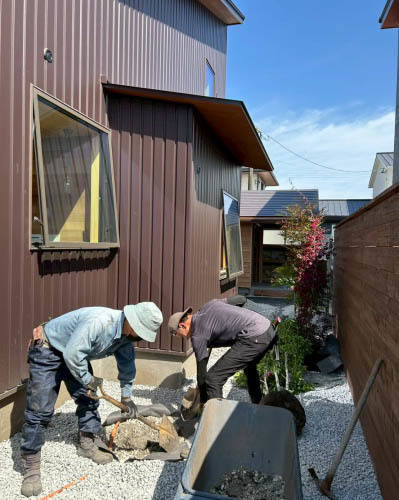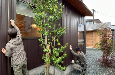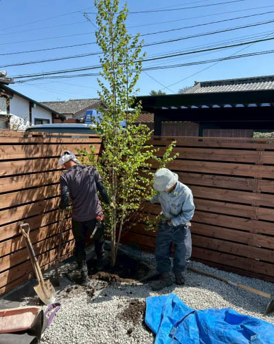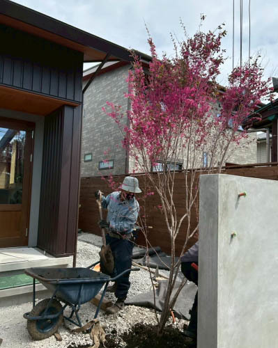 外構の仕上げは植栽工事。建物と敷地の融合が完成します。