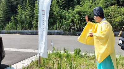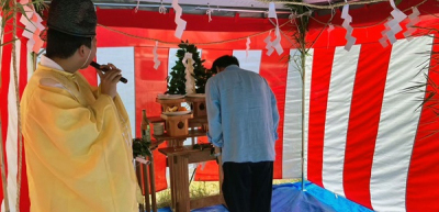 土地の神様へ、工事の無事を祈ると共に ご施主様の繁栄や無病息災を祈ります。