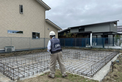 配筋が完了すると第三者機関による配筋検査を実施しました。