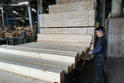先日、木材の加工工場にて『番付』を行いました。
