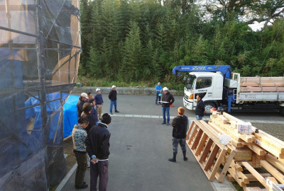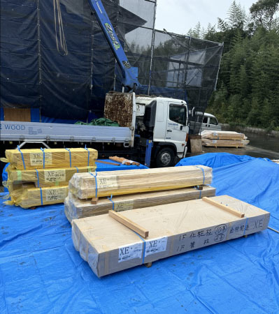後日、続々と構造材が現地に運び込まれます。