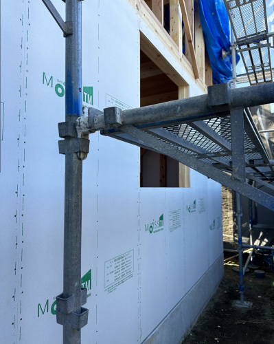 外回りには下から外部モイスを施工していきます。