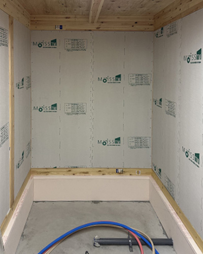 お風呂周りでは断熱材とモイスをグルっと囲みました。