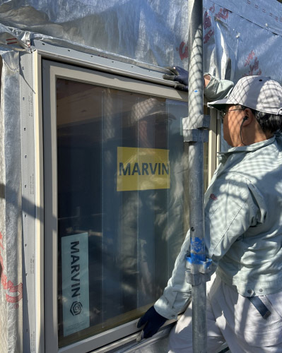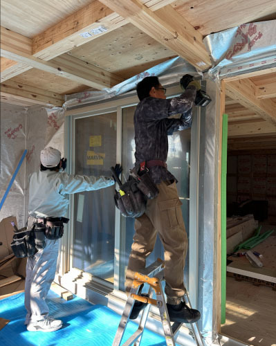 開口部の防水処理が終わるといよいよ取付です。