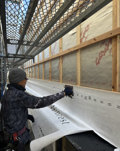 2枚目の透湿防水シートを施工中です。
