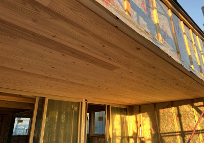 仕上げ工事に入る為、外部や軒天の下地組みを進めていきます。