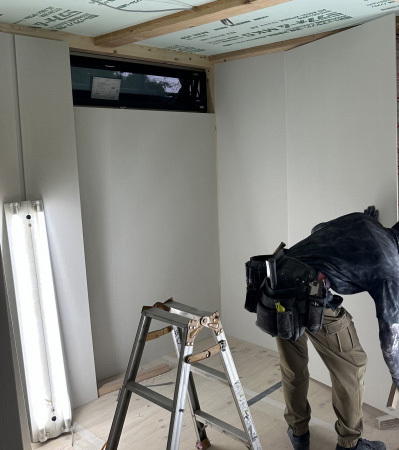 壁工事が終わると天井張りへ。