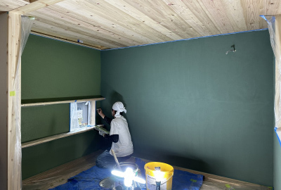 並行して2階の和室では塗り壁を施工中です。