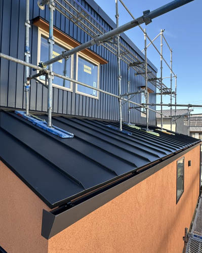 今回はガルバリウム鋼板屋根の立平葺きを採用。