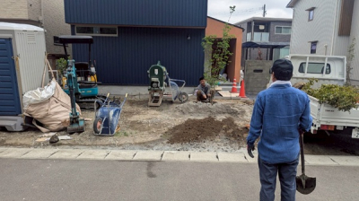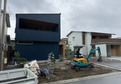 足場が解体された外部では外構と植栽工事が始まりました。