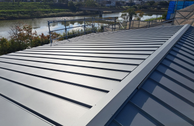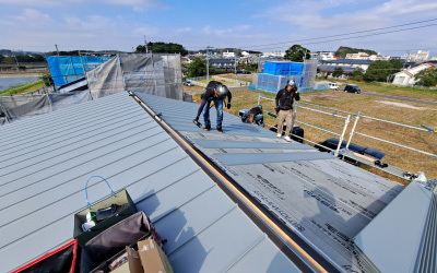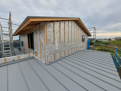 同時進行で屋根のガルバリウム鋼板葺きの状況。