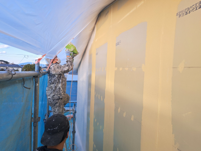 下地処理→下塗り→仕上げ塗りへと工程を重ねようやく完成!