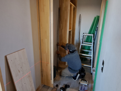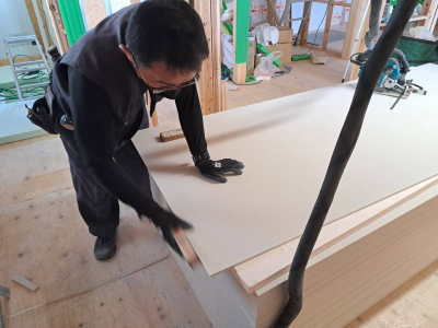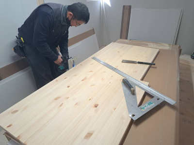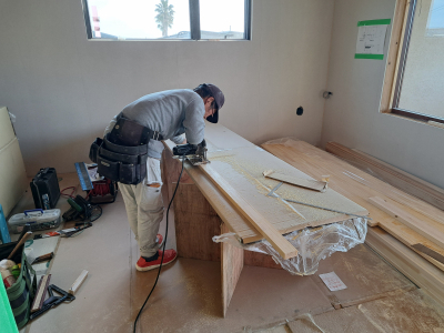 床工事を終えるとシューズクローク棚の造作工事をはじめ様々な造作工事へ。