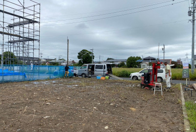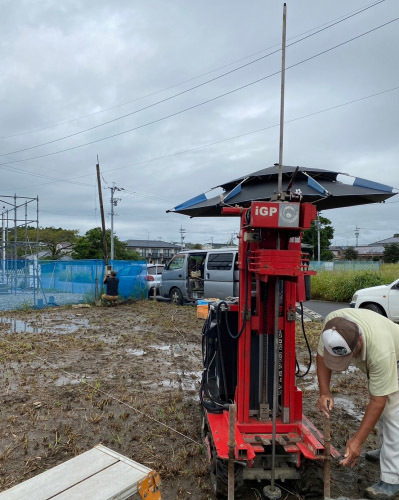 建物を建てる前に、地盤の性質や強度を測定する地盤調査です。