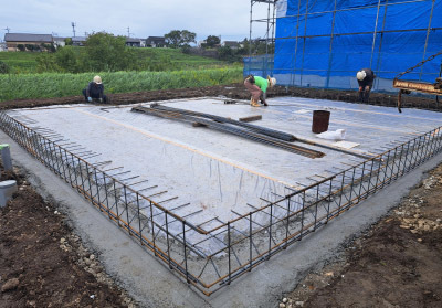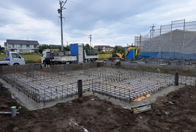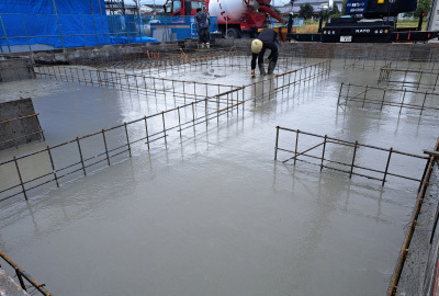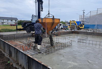 検査は無事『適合』判定をいただき早速、底盤のコンクリート打設へと進みます。