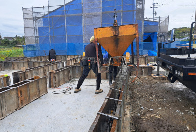 基礎屋さんの臨機応変な対応で全てのコンクリート工事が無事完了しました。