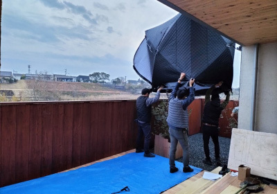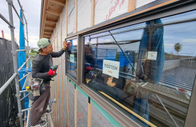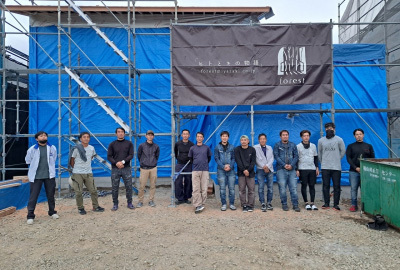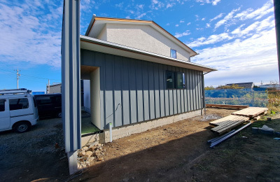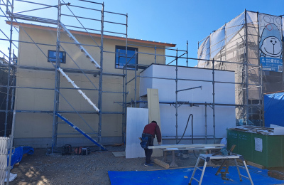 外部の仕上げ工事がすすむ「おうちSAUNA」の現場。