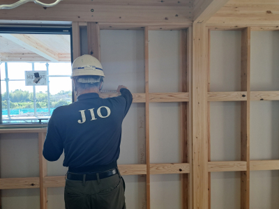内部に移り耐力壁の配置・釘ピッチ・金物状況など第三者の目を通し細かな検査が続きます。