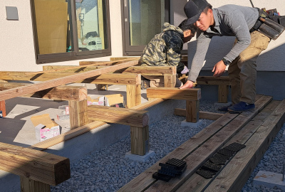 お庭の方では大工さんによるwoodfenceの造作工事や、