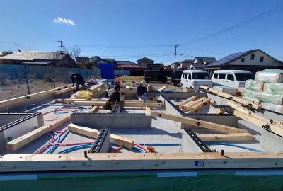 現場「HOUSE K」は基礎工事後、土台敷きの工程へと進みました。
