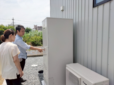 お引渡しの準備が整った室内にて、設備機器の取り扱いや 木の家の住まい方のポイントなどをご説明させていただきました。