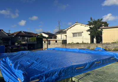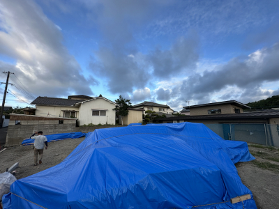 更に上から特大のブルーシートで保護すると1日目の作業が終わりました。