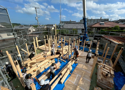 作業足場の架設が終わるといよいよ上棟が目前に迫ります。