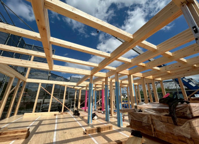 美しい柱・梁が大工さんの手によって組まれて行きます。