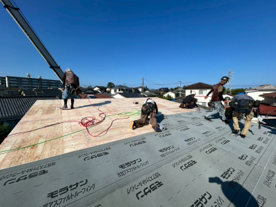 棟上げが無事に完了した『collect room』では 屋根工事を行いました。