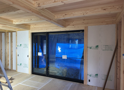 屋根葺き工事の完了した『collect room』では サッシの取付を行いました。