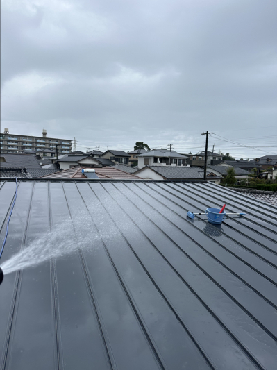 たっぷりと水をかけて溜まったホコリや汚れを流します。