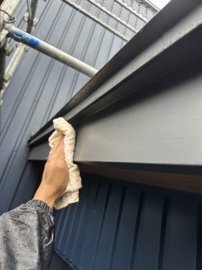 A型を発揮しながら仕上げ拭きを行い 屋根→2階→1階へと降りていきます。
