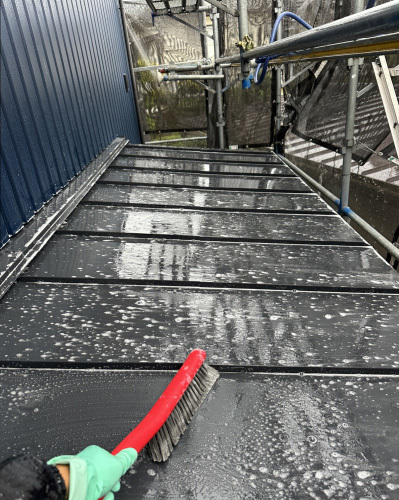 外壁工事が完了した『collect room』では 足場解体前の磨き・洗浄を行いました。