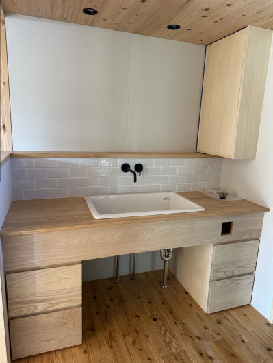 オリジナルの造作洗面台は オーナー様と打ち合わせを重ね、拘りが詰まった仕様に。