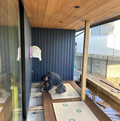 下準備が完了したのでいよいよ外壁張りを始めます。