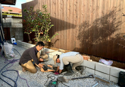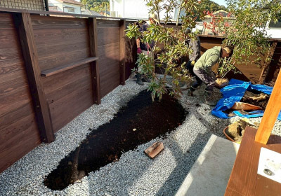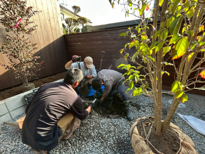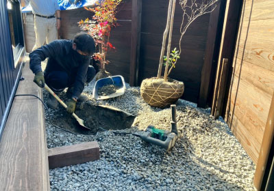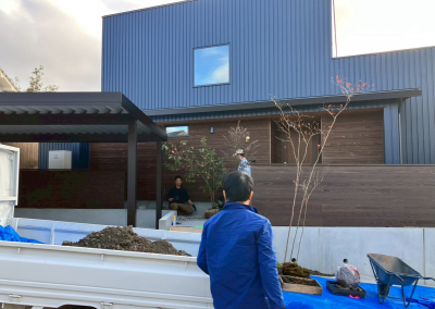外部のコンクリート打設が終わると 残すは植栽作業を残すのみ。