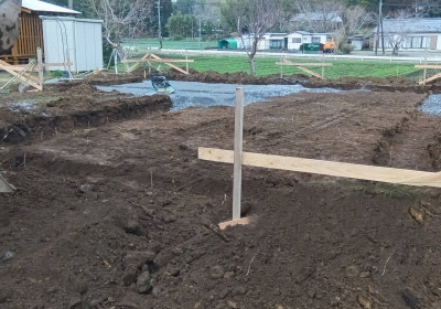 掘削が終わると砕石を敷き詰めしっかりと転圧。