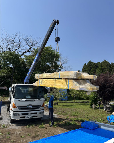 先ずは外壁となるガルバリウム鋼板を搬入。