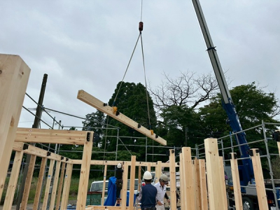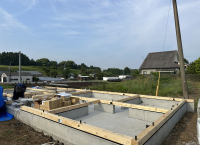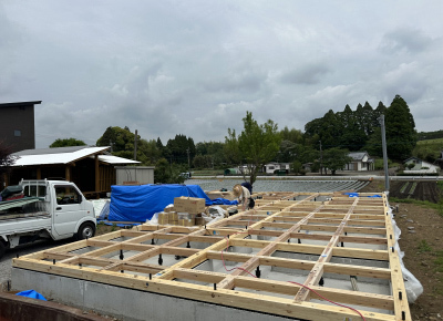 基礎工事が完了した『Green Hill』では 棟上げの準備『土台敷き』を実施しました。