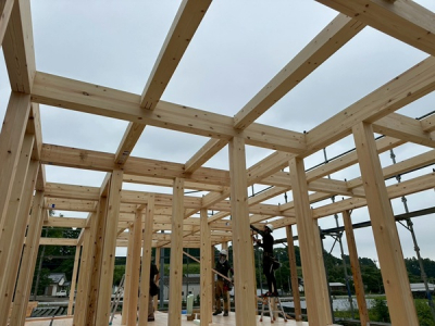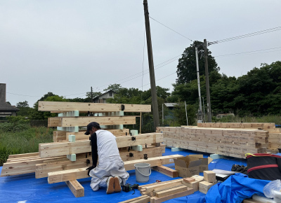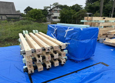 梅雨真っ只中での土台敷きでしたが、無事に準備が完了。