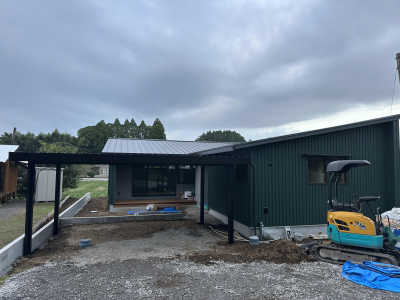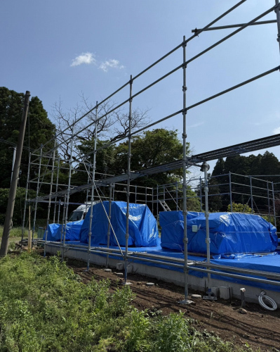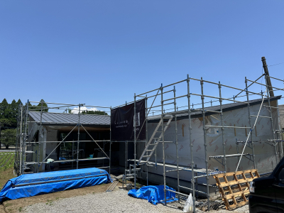 着工前はフラットだった敷地に無事、ここまで建物が出来た事に 感謝しながら想いを込めて仕上げていきます。