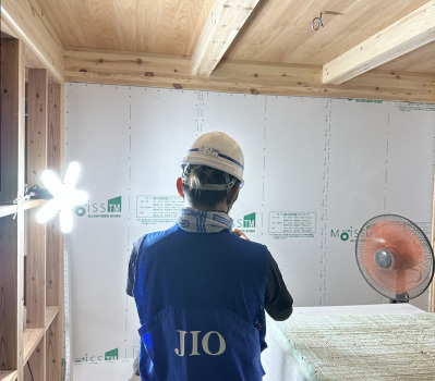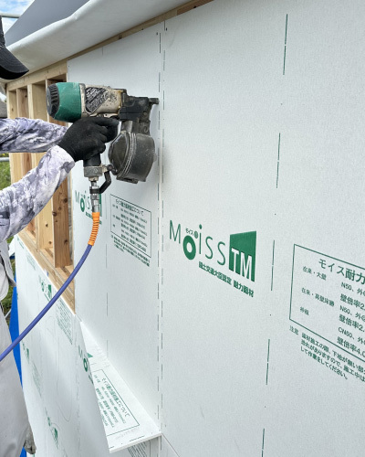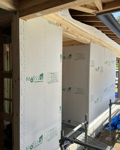 厚みが約1㎝有るmoissパネルを張ることで 建物を面で支える事が出来る為、剛性が大幅にUP。