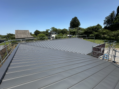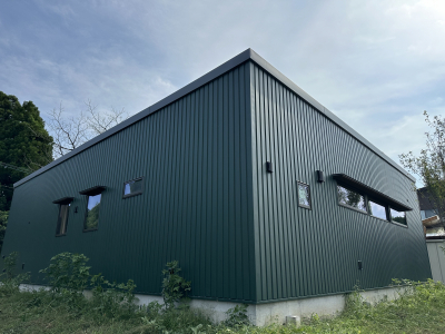 L形の建物に片流れの屋根が規則正しくとても綺麗に仕上がりました。