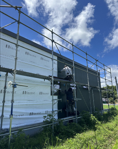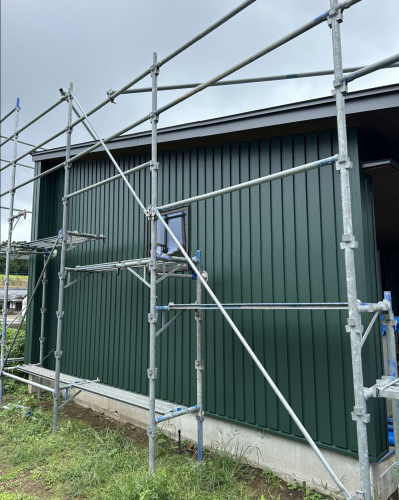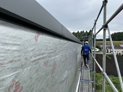 外部の下地処理が完了した『green hill』では 仕上げの外壁張り工事を進めていきます。