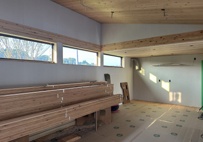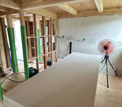 内部用のモイスも搬入され、外部と並行しながら内部工事も進めていきます。