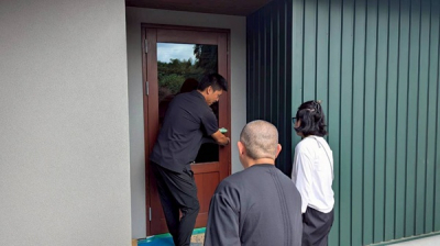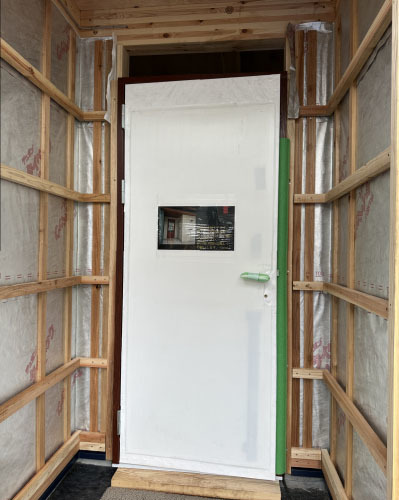 木製の玄関ドアが届いたので早速、取付を行いました。