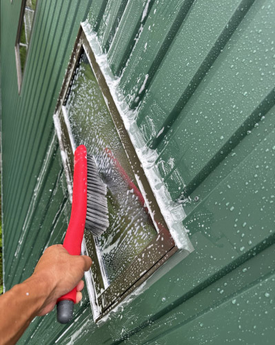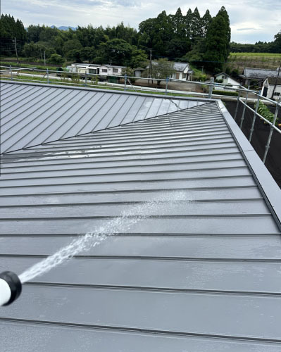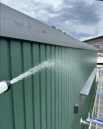 ただ建物を綺麗に洗うだけではなく漏水確認や納まり キズ等のチェックも行い1面ずつ綺麗に丁寧に。