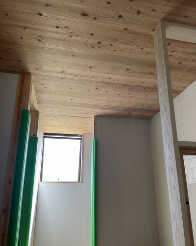 化粧となる柱や梁はキズや汚れ・日焼けから守る為にしっかりと保護。